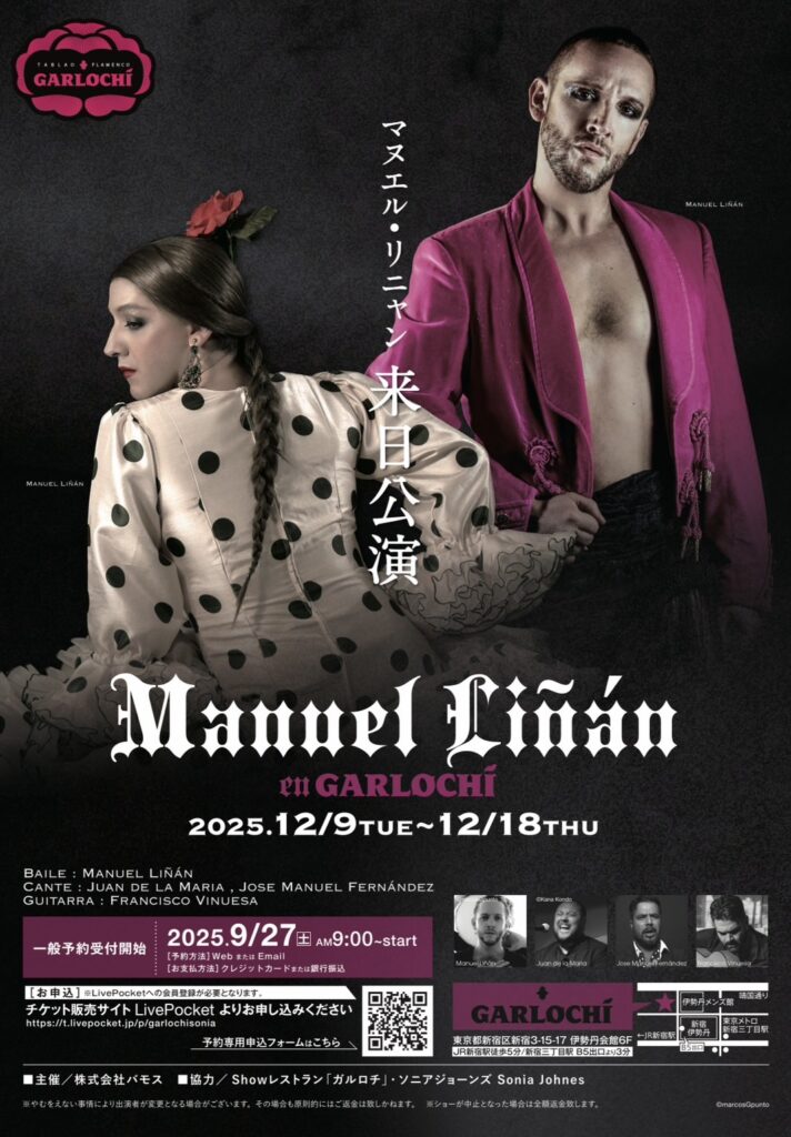 ★12月のマヌエル・リニャン公演 Manuel Liñán en GARLOCHÍ 9/27(土)AM9:00よりご予約受付開始!