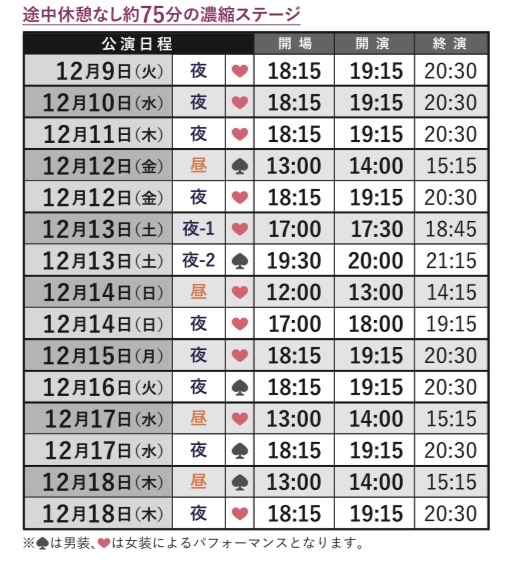 2025年12月9日(火) 〜 12月18日(木) ★お日にちにより、男装、女装の異なるパフォーマンスとなります。